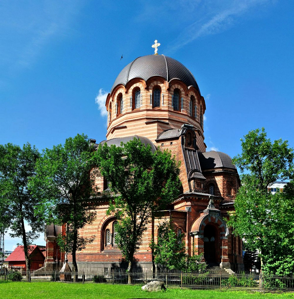 Первый камень в фундамент положил сам император Александр III. Освящение храма состоялось 17 ноября 1896 года. В этот день архиепископ Рижский и Митавский Арсений (Брянцев) освятил главный престол во имя Воскресения Христова. Два других престола – во имя иконы “Всех скорбящих Радость” и “Святителя и Чудотворца Николая” были освящены в 1897 году. Архитектурное решение храма восходит к византийской культурной традиции, и в плане он имеет вид греческого креста. У Нарвского собора, подобно Софийскому собору в Константинополе, есть центральный купол, главенствующий в пластике объёма здания и создающий просторный и величавый интерьер, являющийся совершенно уникальным элементом в архитектурном облике города.